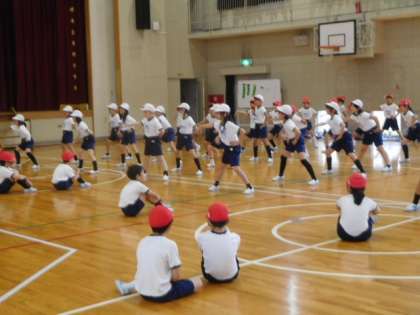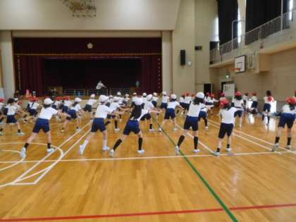 4年生 「体育参観 練習」 公開日 2024/05/07 更新日 2024/05/07 4年生 今日から、体育参観の練習が始まりした。 団体演技は、「ソーラン節」です。 腰をしっかり落とすことを意識してがんばっていました。