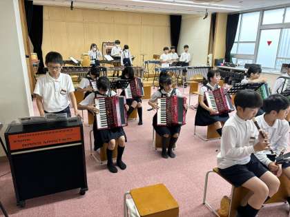 6年 音楽 公開日 2024/06/05 更新日 2024/06/02 6年生 ラバースコンチェルトの曲を練習しています。楽譜を見ながら一生懸命取り組んでいます。みんなで1つの曲を作り上げていくのは楽しいですね。