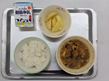 今日のメニューは、ごはん・チャージャンどうふ・ベイクドポテト・牛乳です。