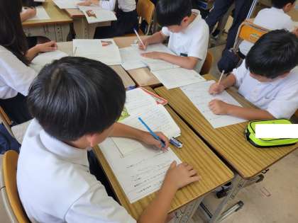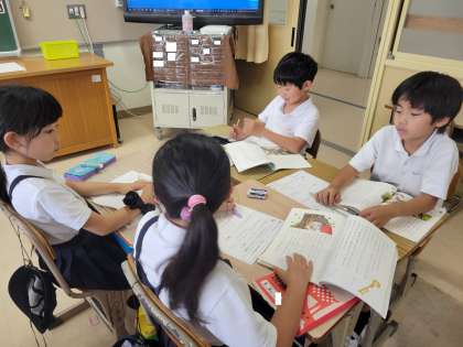 国語科では「まいごのかぎ」の学習をしています。今日は場面ごとの出来事について、班で協力しながらまとめました。自分が思ったことについて、積極的に交流することができていました。