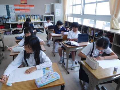 4年生 国語「アップとルーズで伝える」 公開日 2024/06/06 更新日 2024/06/06 4年生 2人の筆者から学んだことをいかして、友だちに伝えるための準備に入りました。 文章を書いて伝えるのか、話をして伝えるのか、紙に書くのか、ワードや発表ノートを使うのかなど、それぞれが選んで進めています。 「そうか!そう書けば伝わりやすいね!」など、困ったときには、友だちと話をしながら進めている人もいました。