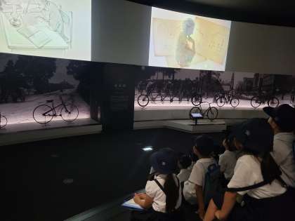 3年生 自転車博物館 その1 公開日 2024/06/06 更新日 2024/06/06 3年生 堺市の有名なもの「自転車」についてより詳しく知るために、自転車博物館に見学に行きました。 自転車の誕生についての映像を見たり、展示物を見学したりすることで、堺と自転車との関わりについて深く知ることができました。