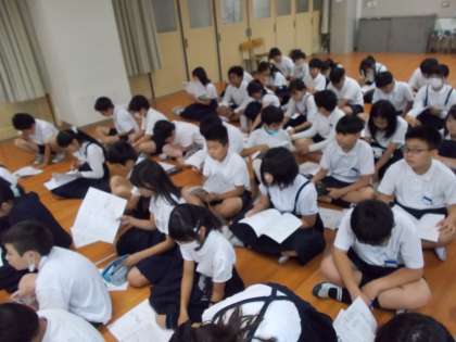 しおりを見ながら,当日の行程や持ち物の確認などしました。