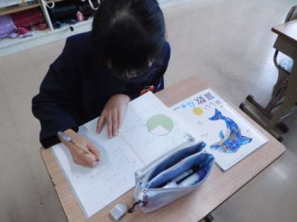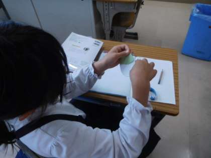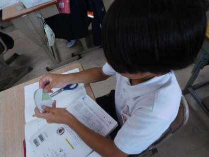 4年生 算数「角の大きさ」 公開日 2024/06/07 更新日 2024/06/07 4年生 「角の大きさ」の学習に入りました。 2つの切り取った円を重ね、一方を回転させて、いろいろな角を作ってみました。 だんだん角の大きさが大きくなっていくことや直角をもとにすると、角の大きさも数で表すことができることなどに気づきました。 長さを測るものさしみたいなものがあればいいなという考えも出ました。