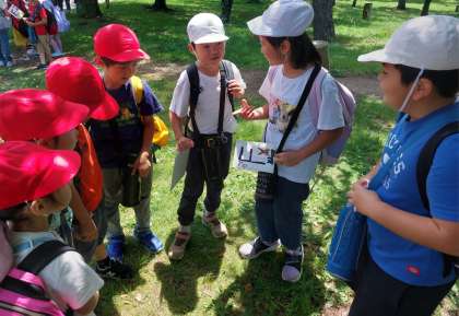 公園に着いたらグループに分かれてオリエンテーリングをしました。しりとりやじゃんけんなど数々のミッションをクリアしていきます!!