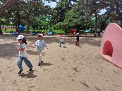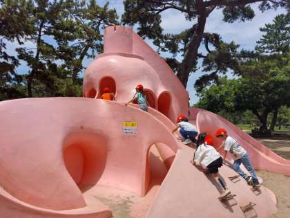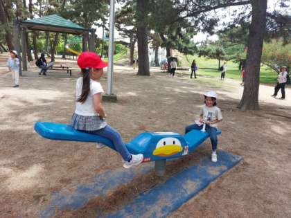 おなかが一杯になったあとは、大きな遊具で遊びました。みんなで仲良く遊べました。