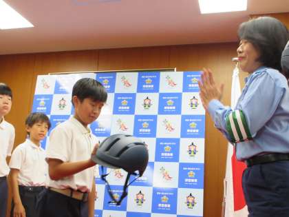 自転車大会表彰式(2) 公開日 2024/06/11 更新日 2024/06/11 学校からお知らせ 堺警察署様より記念品として、「自転車用ヘルメット」と「ヘルメットホルダー」をいただきました!! ありがとうございました。 今回学んだ自転車の正しい乗り方や交通ルールを活かすととともに、ヘルメットもしっかりとかぶって安全に自転車を利用してくださいね。