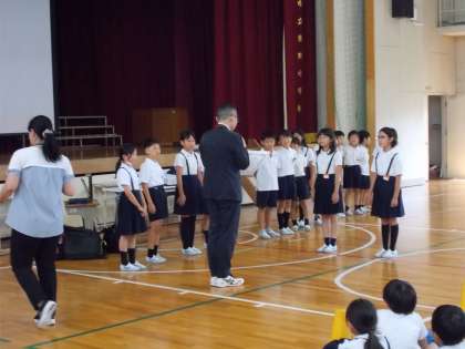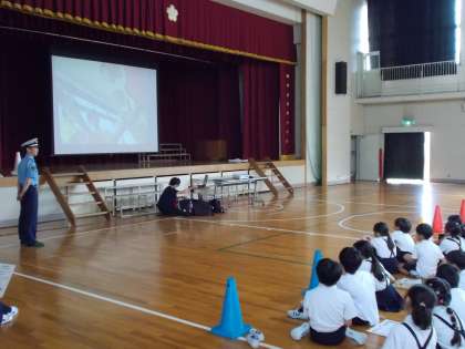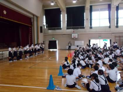 ドッジボール大会や自転車大会の表彰,自転車大会は,堺警察署の方が来てくださって大会の様子も教えてくれました。