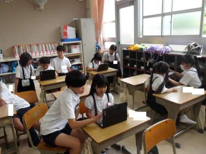 6年生にタブレットのログインのしかたやカメラ撮影・トリミングの方法を教えてもらいました。