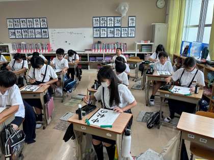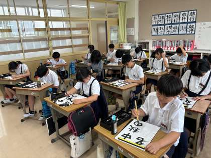 6年 書写「はとぶえコンクールに向けて」 公開日 2024/06/25 更新日 2024/06/22 6年生 はとぶえコンクールに向けて「中秋の名月」という字を書きました。文字の数が多くて難しい中、最後までていねいに書いていました。