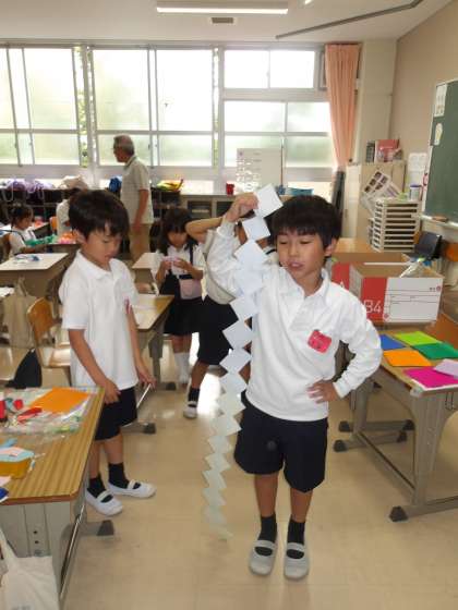 1ねん 国語・図工 公開日 2024/06/25 更新日 2024/06/25 1年生 国語では「おおきなかぶ」を学習しています。自分の考えをみんなに伝えるのをがんばっています^^ 図工の「かざりづくり」では、完成に近づいてきて、七夕にむけた「たなばたかざり」の制作もがんばっています!