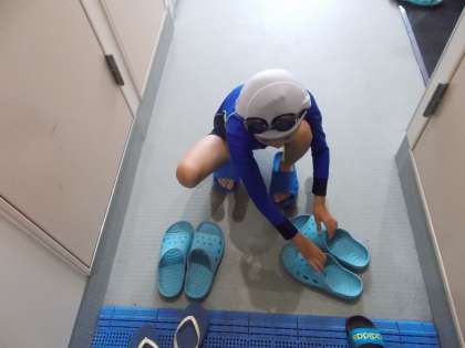 忙しい中ですが,水泳の前にもスリッパを揃えてくれました!
