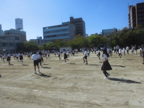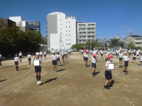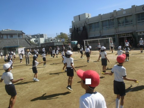 汗ばむ陽気の中,縄跳びに一生懸命熊野っ子が取り組む姿が見られました。