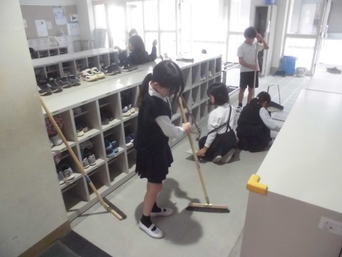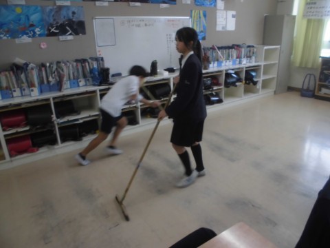 明日の土曜参観に向けて,各教室や廊下,階段…いたるところを熊野っ子みんなで一生懸命掃除しました!