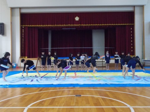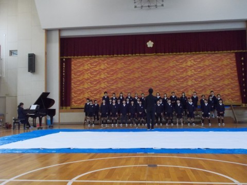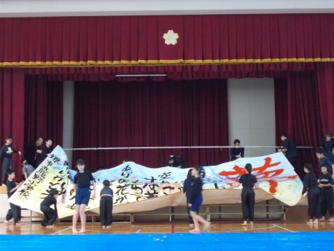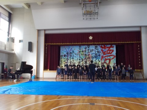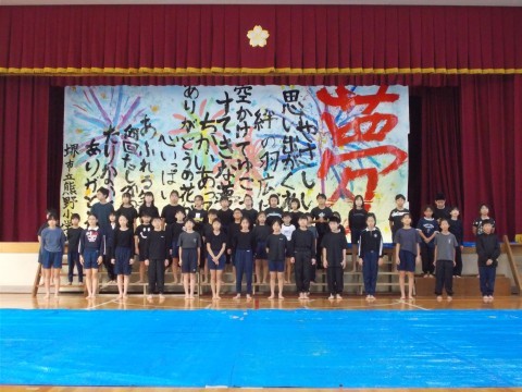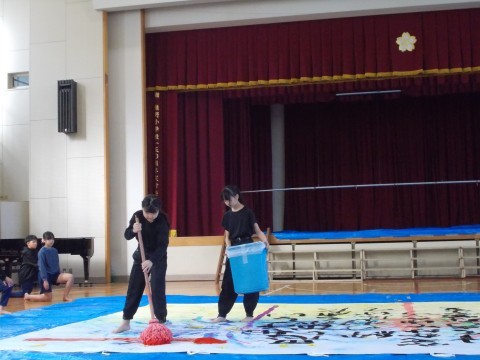 本日、5年生が文化発表会を行い、合唱と書道パフォーマンスをしました。合唱では呼吸や発声、強弱の表現にこだわって練習してきた成果が表れ、澄んだ歌声が体育館に広がりました。続く書道パフォーマンスでは、大きな筆を運び、思いを込めた言葉を堂々と書き上げました。ご観覧いただいた保護者の皆様、暖かいご応援ありがとうございました。