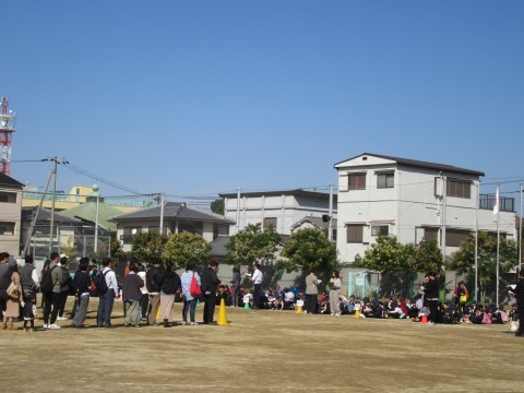 保護者の皆様におかれましては、運動場の方に出ていただき、