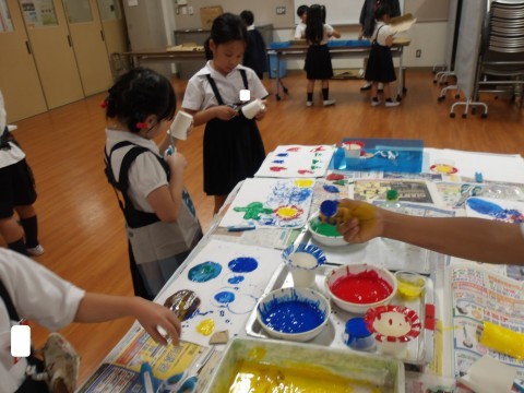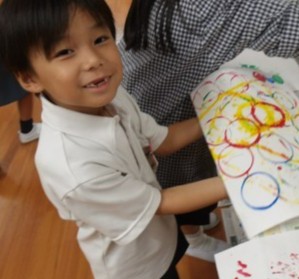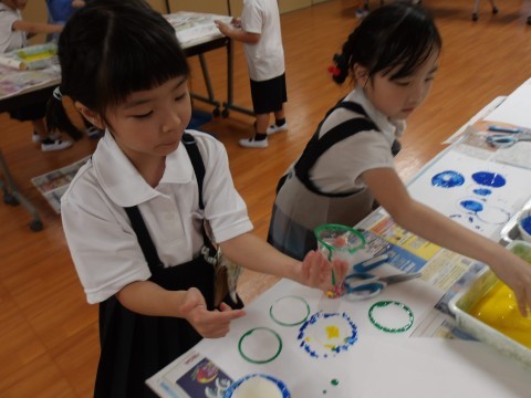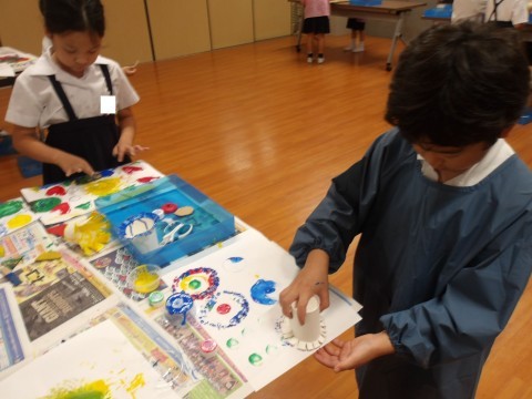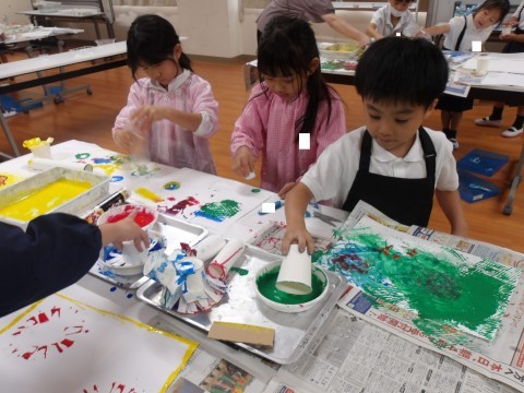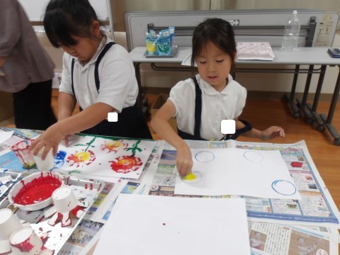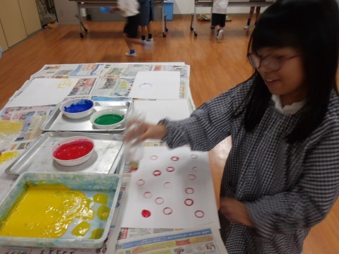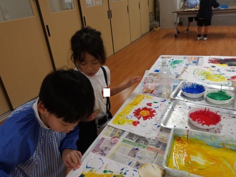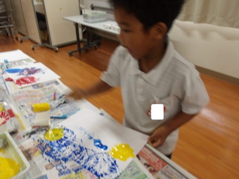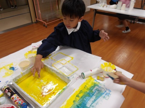 スタンプを自分で作ったり、スタンプどうしを重ねて押してみたり、時間いっぱい楽しんでいました^^