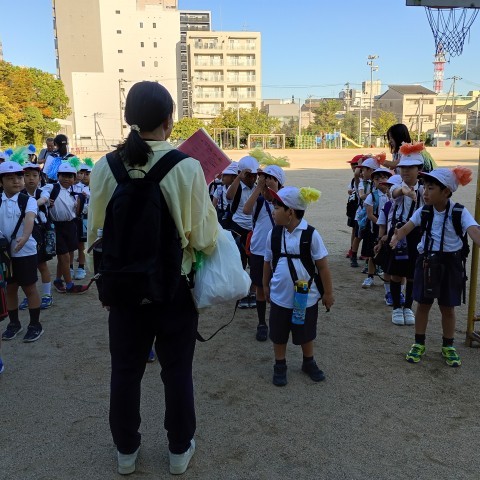 自分達で障害物を置いて,走る練習をしました。初めは倒してしまったり,タイミングが合わなかったりしましたが,慣れてくるとリズムよく走ることができました。最後はリレーをして盛り上がりました(^^)♪