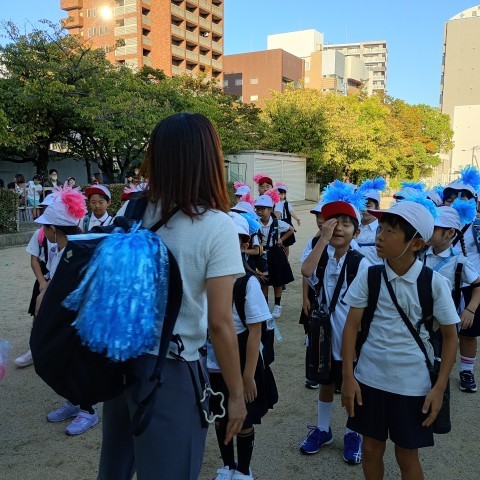 本日は1年生2年生の大阪万博への郊外学習です。今から出発式です。