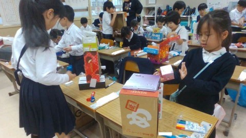 箱を組み合わせて、どんなものを作りたいか考えました!