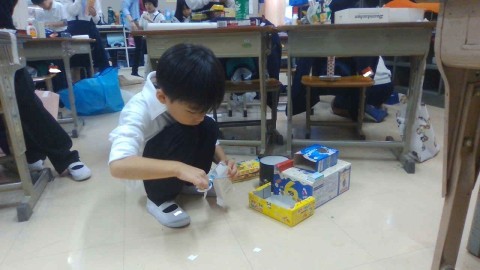 箱と箱を組み合わせて、自分が作りたいものを組み立てました。