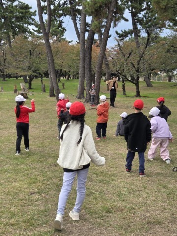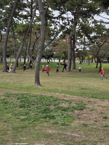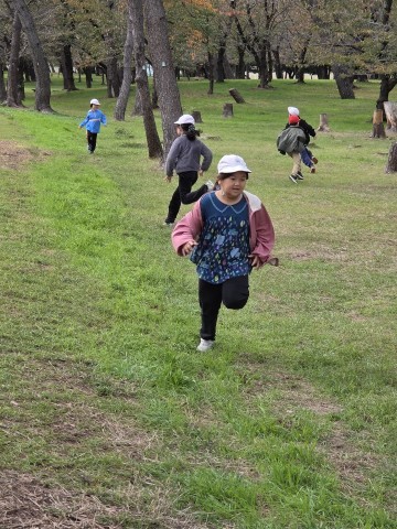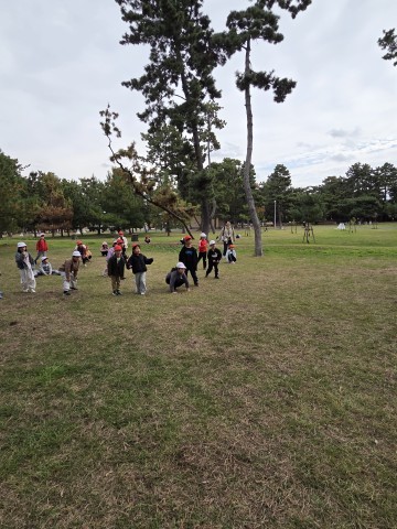 班にわかれて、『秋見つけビンゴ』スタートです!