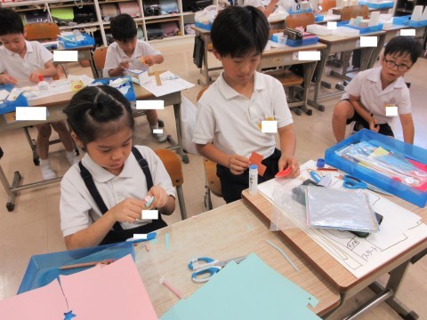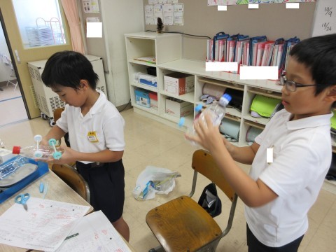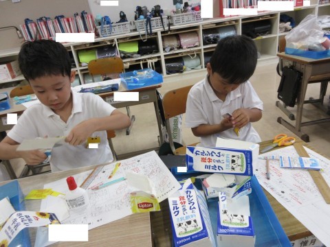 「あそび大すき!おもちゃ名人☆」という単元で,自分たちで材料や組み立てを試行錯誤しながら,おもちゃを「レベルアップ」させる方法を考えました。