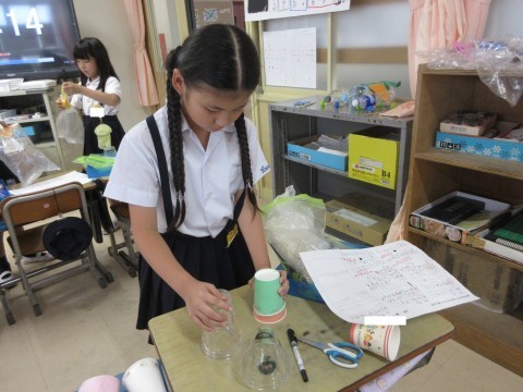 身の回りで聞こえる鳴き声を組み合わせて班ごとに音楽をつくりました。鳴き声の高さやはやさタイミングを工夫して、みんなの前で発表しました♪