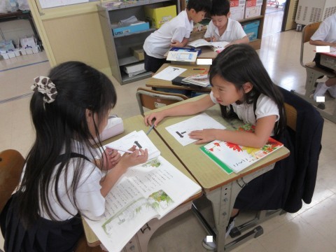 最初と最後の場面のさし絵が似ているけど、二人の表情が違うという気づきから、