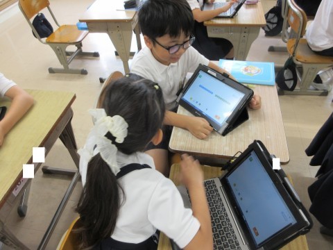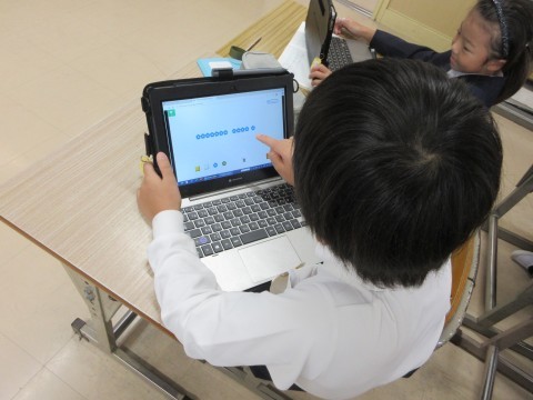 その後は、おはじきを並べて見せ合い、友だちが考えた式を答えました。