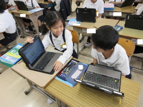 「足にぐっと力を入れるといいよ。」、「手を大きく振った方が遠くまで跳べたよ。」などのコツを見つけることができました。
