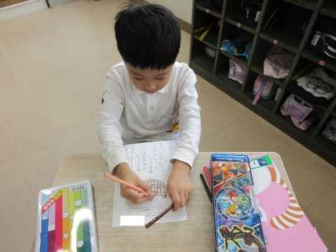 学習した「正方形」「長方形」「直角三角形」を使って、模様づくりをしました。こんな模様もできる!!といろんな発見がありました♪