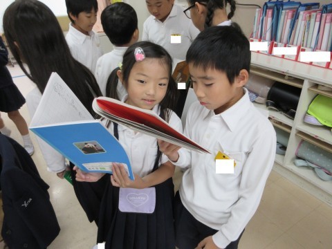 書きあがった秋だよりは、友だちと読み合いました。