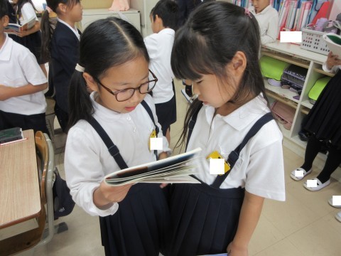 最初と最後の場面のさし絵が似ているけど、二人の表情が違うという気づきから、