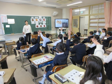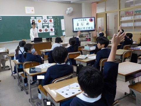 栄養教諭の先生に来ていただき、おせち料理にこめられた願いについて学習しました。