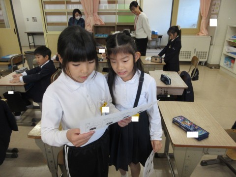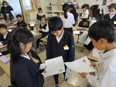 「みきのたからもの」の学習をしています。お話を読んで、人物の様子からどうしてそのことをしたり、言ったりしたのかを考えています。読んで考えたことから、登場人物の心の距離も考えて交流しました♪
