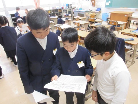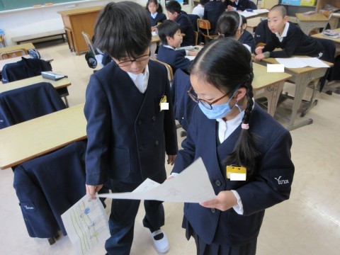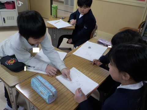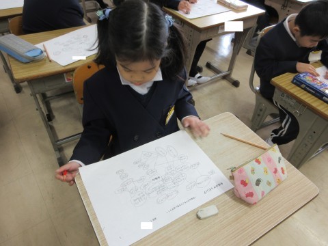 冬休みのできごとをマッピングしながら、楽しかった出来事や心に残った思い出をふり返りました。次の時間には、マッピングでふり返ったことをもとに、作文を書きました。「二枚めにいったよ!」と書きたいことがたくさん出てくるようでした。
