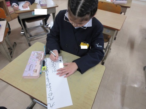 3学期の目標を画用紙に書きました。