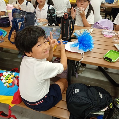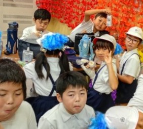 スイス館に入って切り絵のところで、ピカチュウを探しました。みんなすぐ見つかりました。