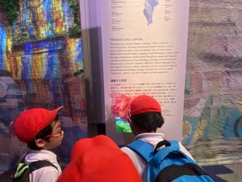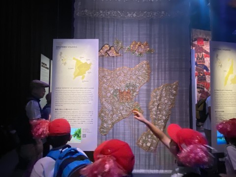 フィリピン館では、動画でフィリピンの自然を見たり、手作りの織物を見たりして、フィリピンの文化についてたくさん学びました。