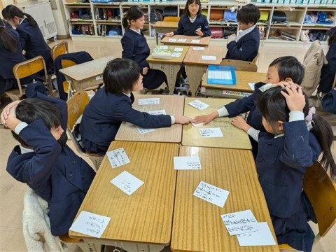 緊張していた3年生でしたが、5年生のお兄さんお姉さんが優しく話しかけてくれたおかげで、笑顔がふえていました。