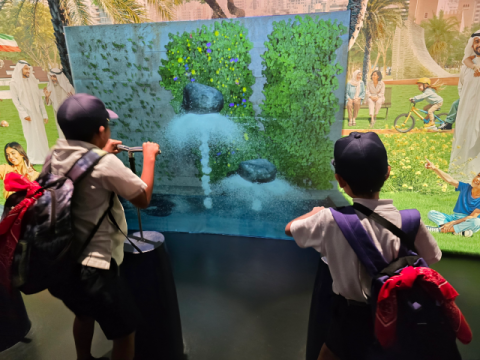 クウェートパビリオンでは、砂漠の砂に触ったり、滑り台・ポンプなどを使った体験をしたりすることができました。