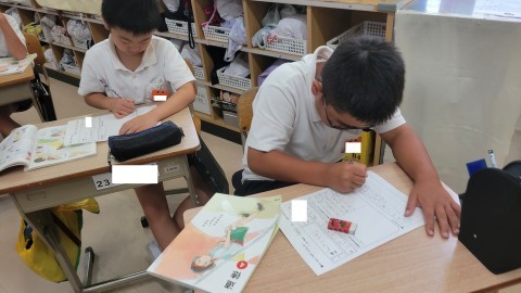 一人でする人、友だちとする人、ノートにまとめる人、プリントにまとめる人…など、どのように学習を進めるかをよく考えながら取り組むことができました。