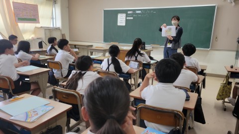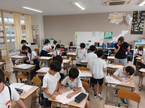 外国語の学習では、時刻の言い方について、クイズをしたり、友だちとコミュニケーションをとったりしながら学習しました。