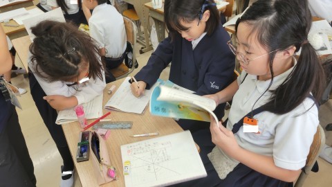 一人で教科書を見て、もくもくと考えたり、友達と話し合いながら考えたりと、意欲的に取り組むことができました。