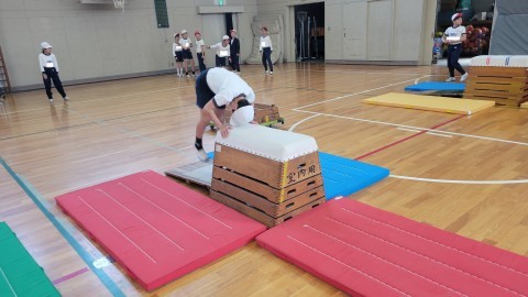 体育の時間には跳び箱の学習をしています。