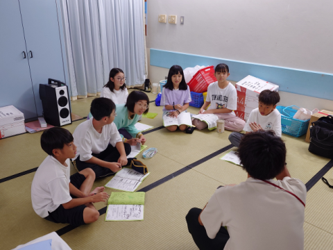 班長で集まり、明日の連絡・今日の活動の振り返りをしました。どの児童も、楽しかっただけでなく、目標を達成できたなど、より深い感想・振り返りを伝え合うことができました。