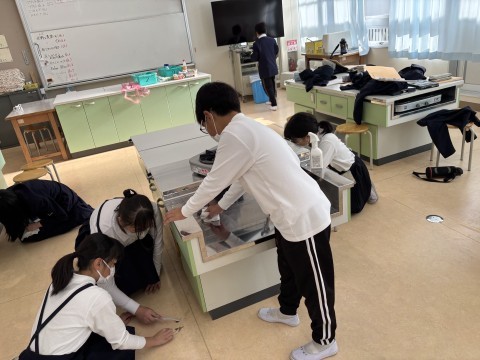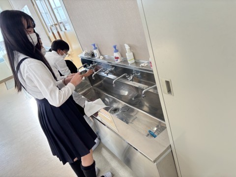 家庭科の学習で、家庭科室の掃除に取り組みました。