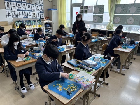 自分で町を作り、その紹介文を考えました。できた文章を互いに読み合って確認しています。