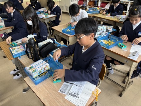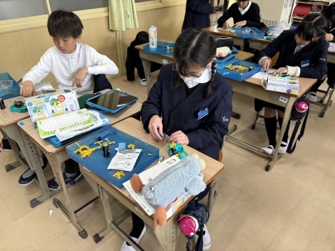 図工では電動ノコギリを使って木の板を切りました。初めての体験でドキドキした様子でしたが、うまく切ることができました。